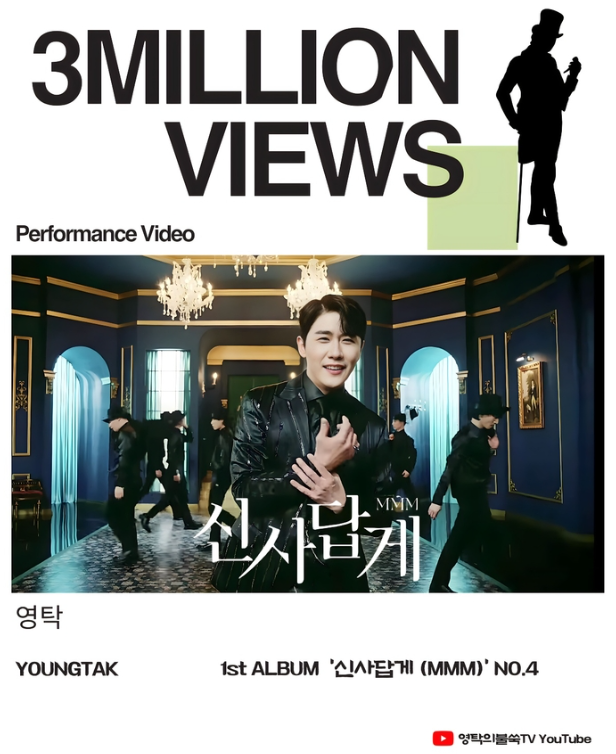 가수 영탁의 ‘신사답게’ 퍼포먼스 영상이 300만 뷰를 넘어섰습니다. 영탁의 공식 유튜브 채널 ‘영탁의 불쑥TV’에 업로드된 ‘신사답게’ 퍼포먼스 영상이 무려 300만 뷰를 돌파, 인기를 잇고 있습니다.